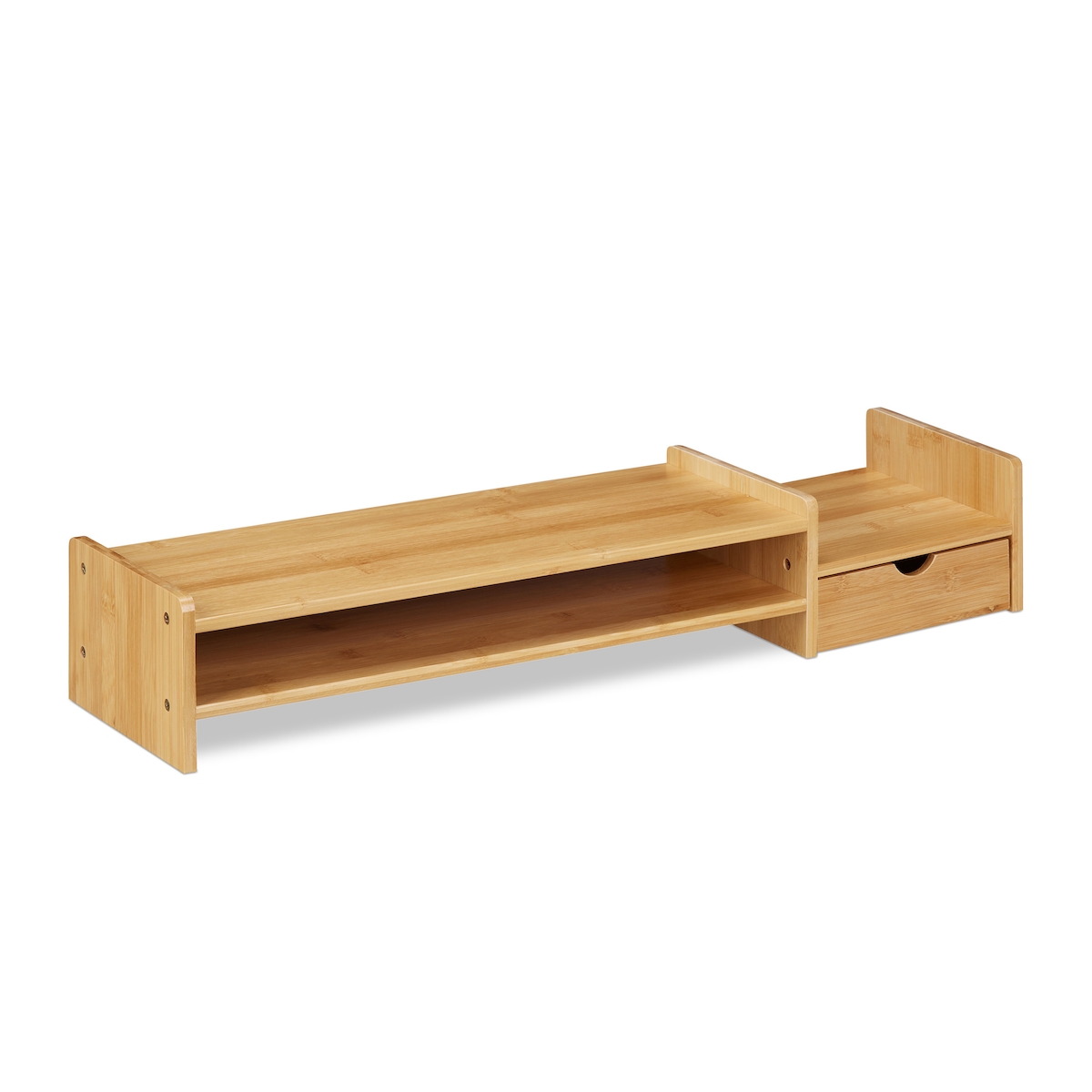 Relaxdays Monitorständer Bambus, Bildschirmerhöhung, PC-Ablage, Bildschirmständer mit Schublade, HBT: 12x70x19cm, natur