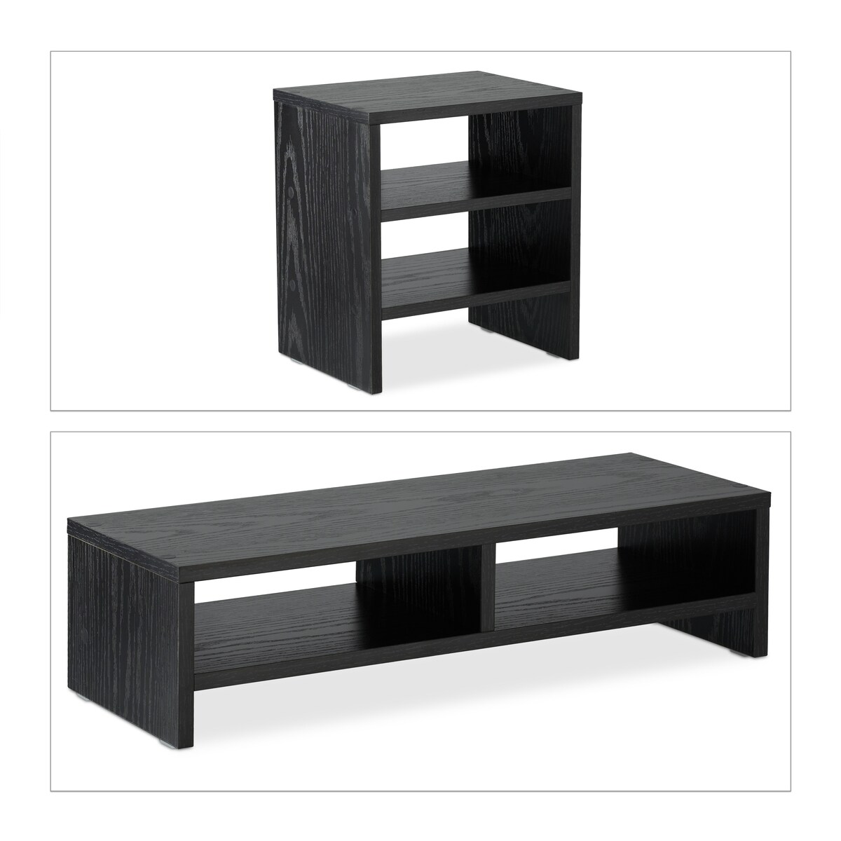 Relaxdays Monitorständer mit Ablagen, 2 Teile, Organizer, Laptopablage für Schreibtisch, Desktoperhöhung Büro, schwarz