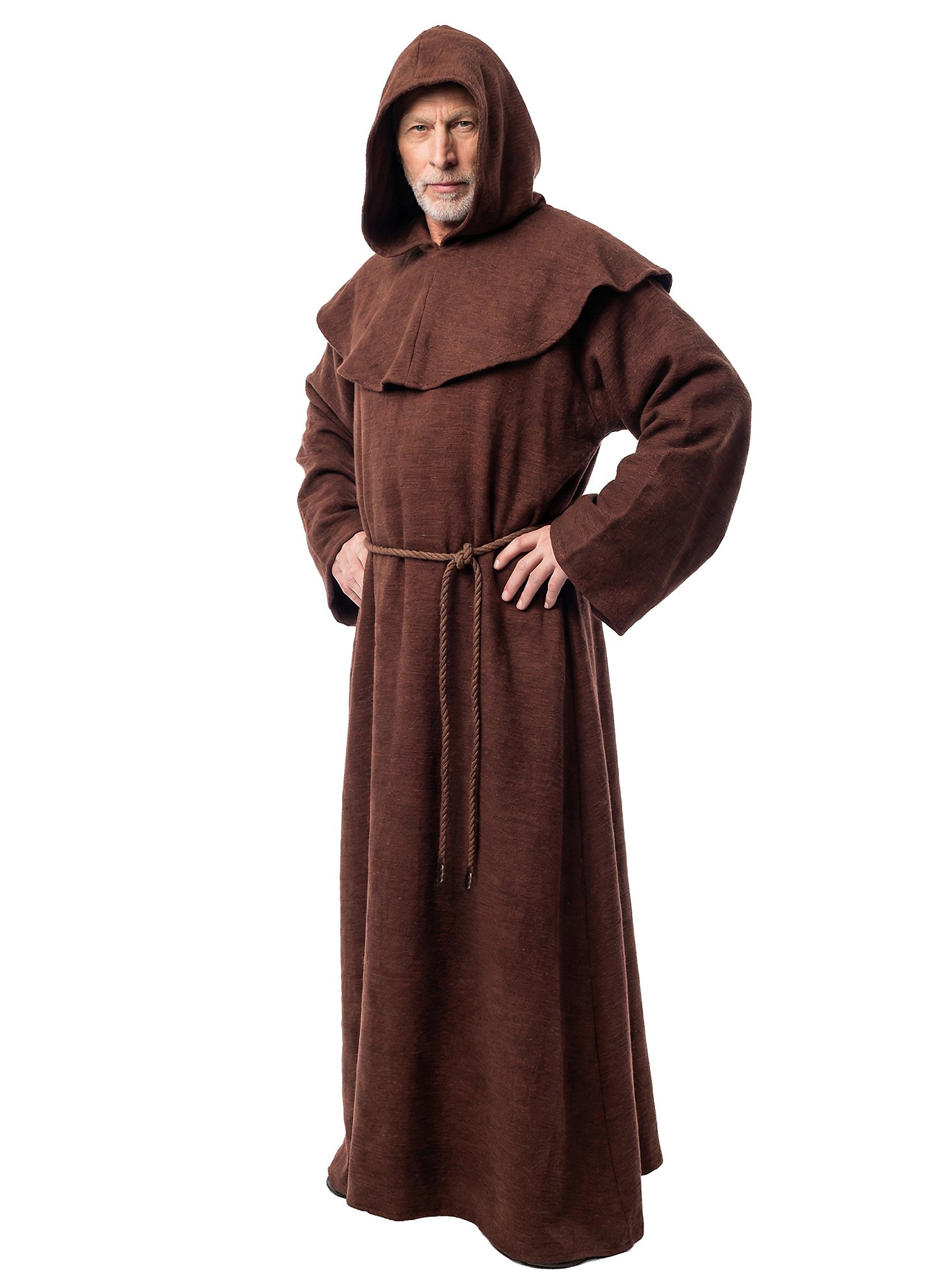 Brown Franciscan monk’s habit “Alanus” – set comprising habit, hood and cord belt, sizes XXL/XXXL, second-hand