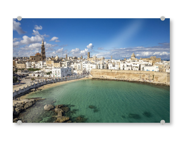 Acrylglasbild "Monopoli aus der Luft" artboxONE - Städte,Reise - Italien,Apulien,Süditalien,Monopoli,Adria,Stadtansicht,Strand,Luftbild,Von oben