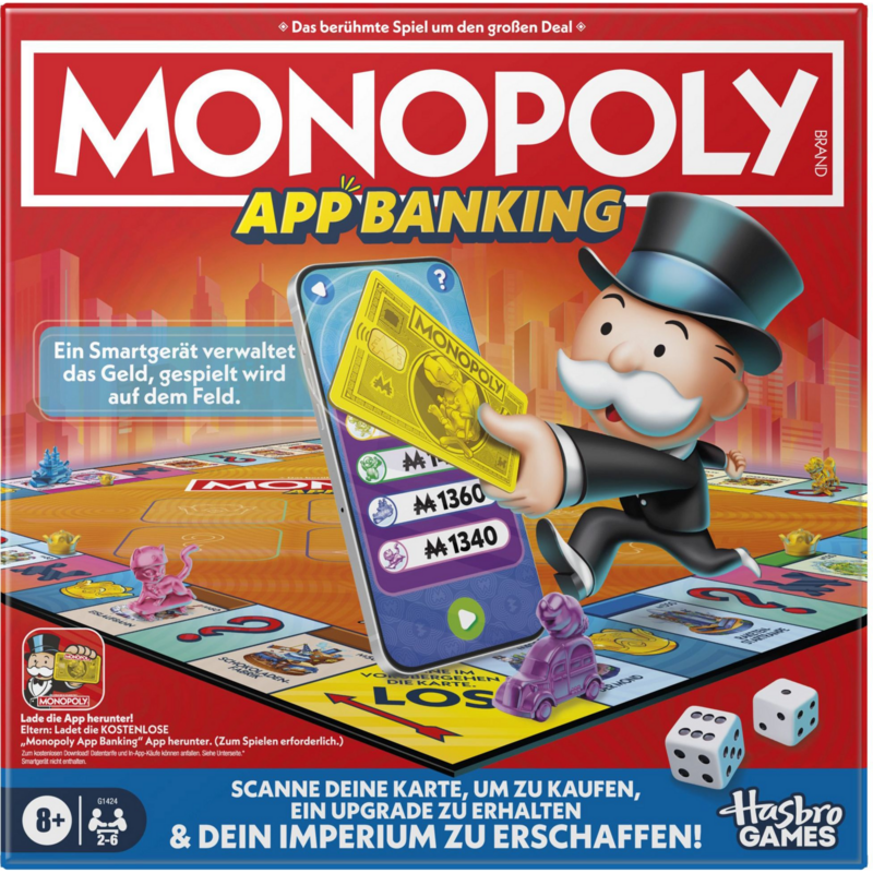 Hasbro Monopoly App Banking Spiel mit App-Unterstützung für Geldverwaltung und