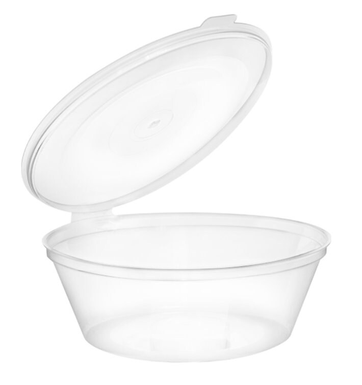 MONOUSO - Transparente Dressingbecher mit Klappdeckel Rund APET 400ml Ø120mm (480 Stück)