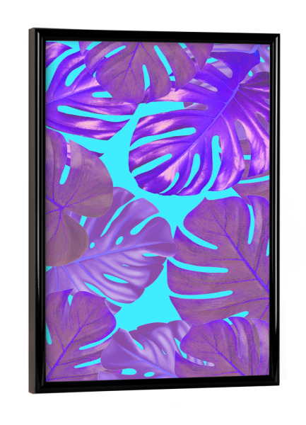 Poster mit schwarzem Rahmen "Fluorescent Floral" artboxONE - Natur,Floral,Abstrakt,Ultraviolet - Monstera,Holographisch,Pflanze,Blaetter,Tuerkis,Lila