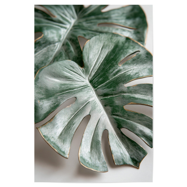 Italienischer Leinwand Leinwandbild - White Monstera (1 Part) Vertical 60x90 cm Blätter b-A-0470-b-a