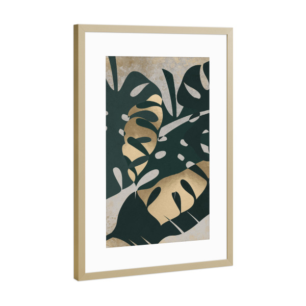 Poster mit Rahmen Gold "Green Sheets" artboxONE - Natur,Floral - Flower,Launch,Novelty,Green,Monstera,Pflanze,Blume,Plant,Nature,Natur,Minimal,Floral