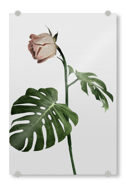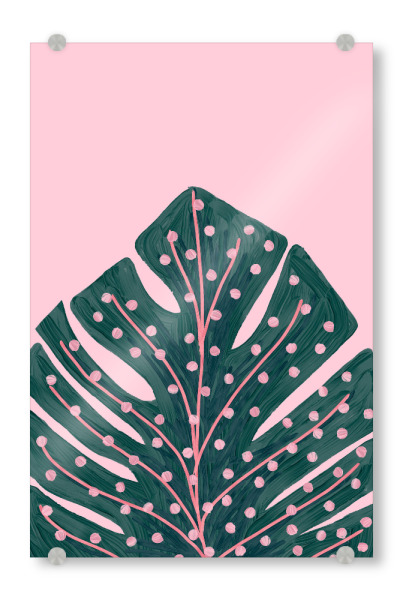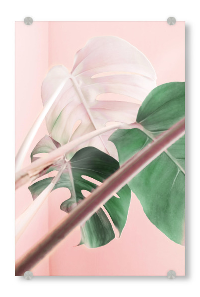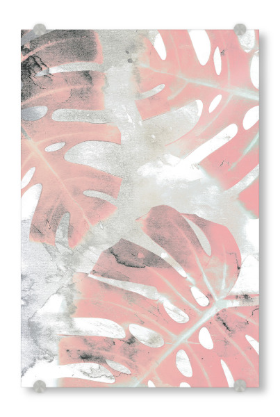 Acrylglasbild "Pink Ombre Monstera" artboxONE - Natur,Floral - Monstera,Leaf,Exotic,Plant,Pink,Blush,Mixed media,Paint