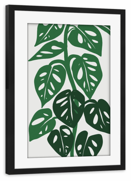 Poster mit Rahmen schwarz "Monstera Plants green" artboxONE - Floral,Abstrakt - Monstera plant,Plant,Floral,Green,Modern,Floral decoration,Nature