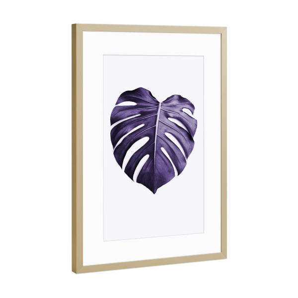 Poster mit Rahmen Gold "Purple Monstera" artboxONE - Natur,Ultraviolet - Ultraviolet,Leaf,Monstera leaf,Purple,Minimalist,Modern plant,Leaf photo