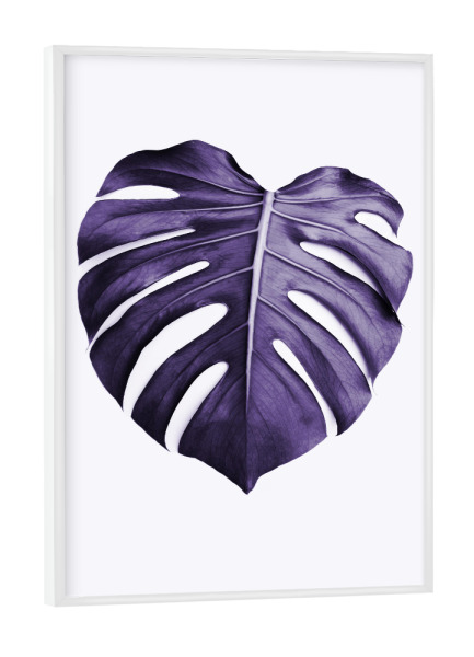 Poster mit weißem Rahmen "Purple Monstera" artboxONE - Natur,Ultraviolet - Ultraviolet,Leaf,Monstera leaf,Purple,Minimalist,Modern plant,Leaf photo