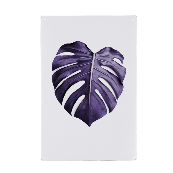 Metall Poster "Purple Monstera" artboxONE - Natur,Ultraviolet - Ultraviolet,Leaf,Monstera leaf,Purple,Minimalist,Modern plant,Leaf photo