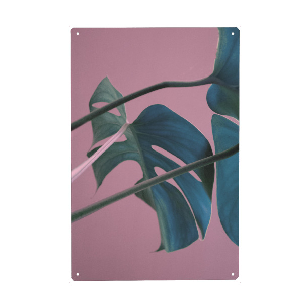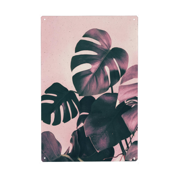 Metall Poster "Glowing Monstera" artboxONE - Natur,Floral - Monstera,Pink,Plant,Leaf,Leaves,Foliage,Greenery - Blechschild