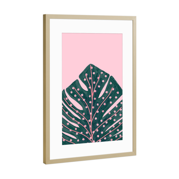 Poster mit Rahmen Gold "Polka Dots Monstera" artboxONE - Floral - Monstera,Leaf,Plant,Blatt,Pflanze