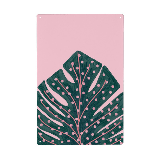 Metall Poster "Monstera Leaf on Pink" artboxONE - Natur,Floral - Pink,Monstera,Leaf,Nature,Plant,Pflanze,Leaves,Blätter,Natur,Green,Grün