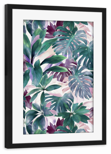 Poster mit weißem Rahmen "Tropical Emerald Jungle" artboxONE - Floral - Monstera,Plants,Leaves,Pattern