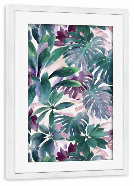 Poster mit Rahmen weiß "Tropical Emerald Jungle" artboxONE - Floral - Monstera,Plants,Leaves,Pattern