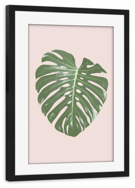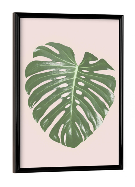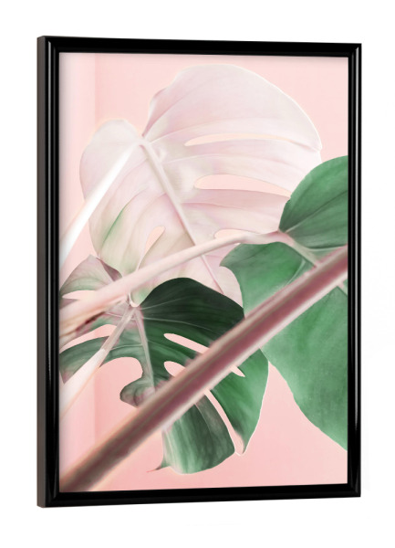 Poster mit schwarzem Rahmen "Tropical Blush I" artboxONE - Floral - Monstera leaf,Tropical,Blush pink,Plant,Leaf,Palm leaf,Photography