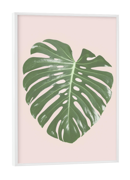 Poster mit weißem Rahmen "Tropical Blush I" artboxONE - Floral - Monstera leaf,Tropical,Blush pink,Plant,Leaf,Palm leaf,Photography