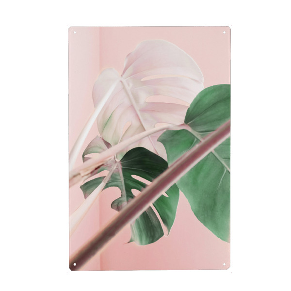 Metall Poster "Pink Ombre Monstera" artboxONE - Natur,Floral - Monstera,Leaf,Exotic,Plant,Pink,Blush,Mixed media,Paint - Blechschild