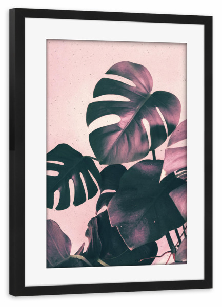 Poster mit Rahmen schwarz "Pink Shadows Monstera" artboxONE - Natur,Floral - Pink,Rose,Leaf,Leaves,Monstera,Tropical,Plant