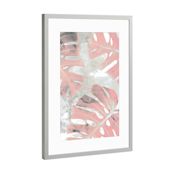 Poster mit Rahmen Silber "Pink Ombre Monstera" artboxONE - Natur,Floral - Monstera,Leaf,Exotic,Plant,Pink,Blush,Mixed media,Paint