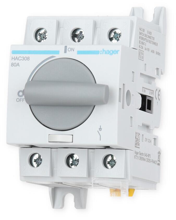 Hager HAC308 Lasttrennschalter 3polig 80A für Hutschiene oder Montageplatte