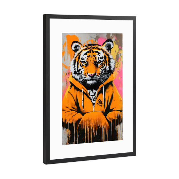 Poster mit Rahmen schwarz "Tiger Grafitti" artboxONE - Tiere,Streetart - Tiger,Grafitti,Banksy,Modern,Streetart,Bestseller,Urban,Morph