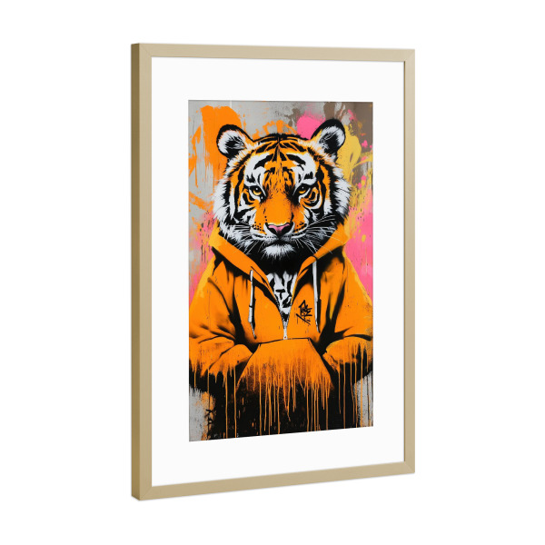 Poster mit Rahmen Gold "Tiger Grafitti" artboxONE - Tiere,Streetart - Tiger,Grafitti,Banksy,Modern,Streetart,Bestseller,Urban,Morph
