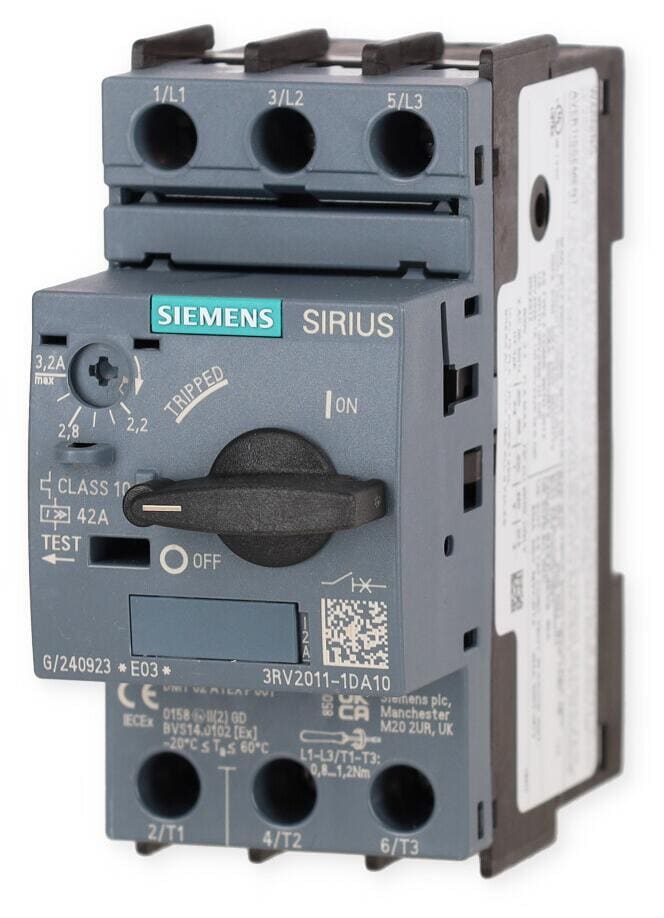 Siemens 3RV20111GA10 Motorschutzschalter, Baugröße S00, 4,5-6,3A
