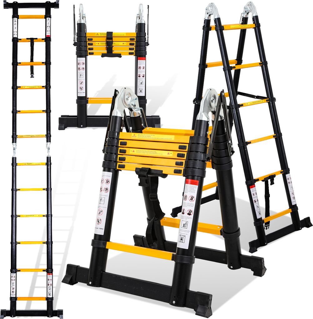 Hengda Teleskopleiter Alu 5m Stehleiter Mehrzweckleiter Alu Anlegeleiter Multifunktionsleiter Ausziehleiter