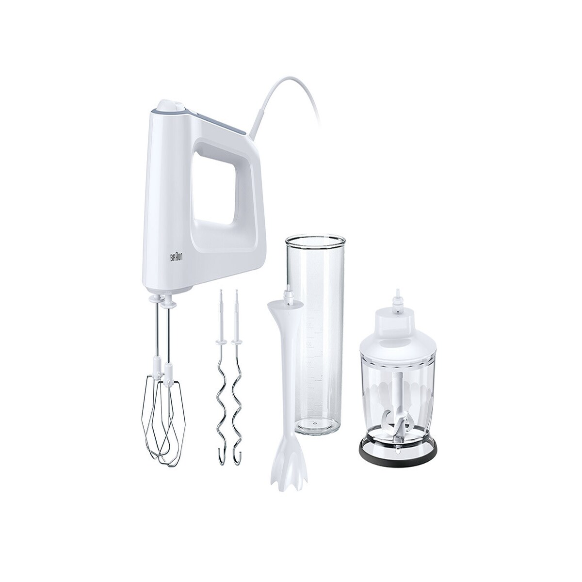 Braun Handmixer MultiMix 5, weiß/grau, 750 Watt, mit Mixfuß, Becher und