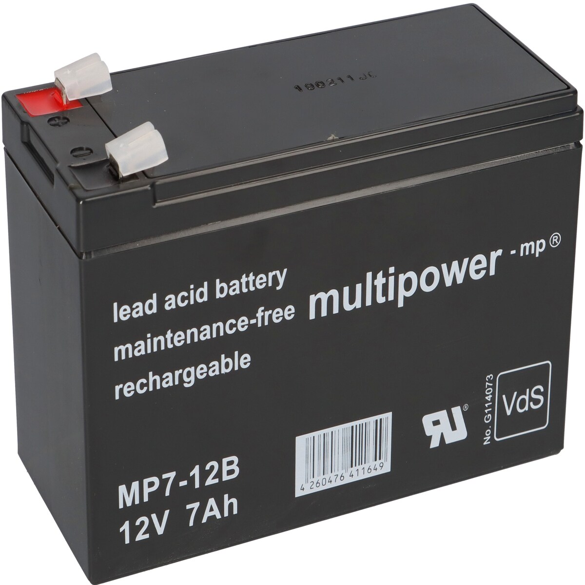 Multipower Hochleistungs- Blei-Akku MP7-12B Pb 12V 7Ah VdS Faston 6,3 mm