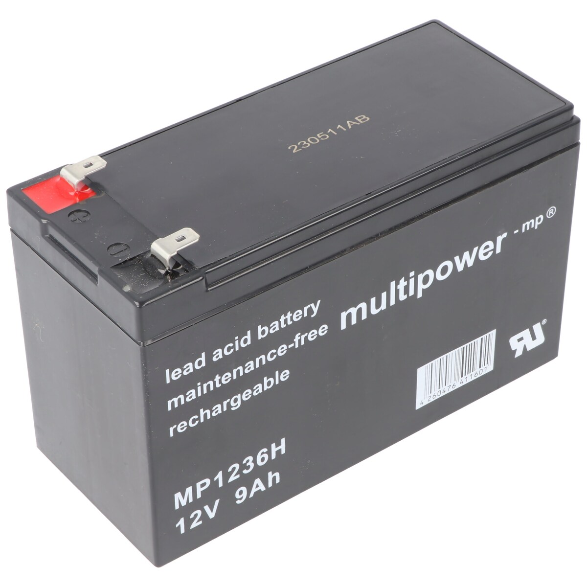 MP1236H Multipower Blei Akku 12 Volt 9000mAh mit zwei Faston Kontakten 6,3mm 151x65x102mm,