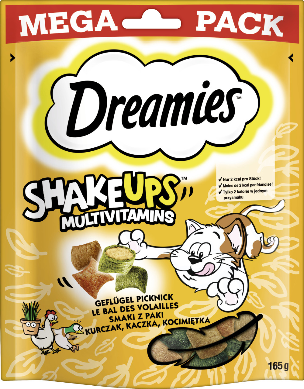 4x 165g Dreamies Shakeups Multivitamins Geflügel Picknick Katzensnacks
