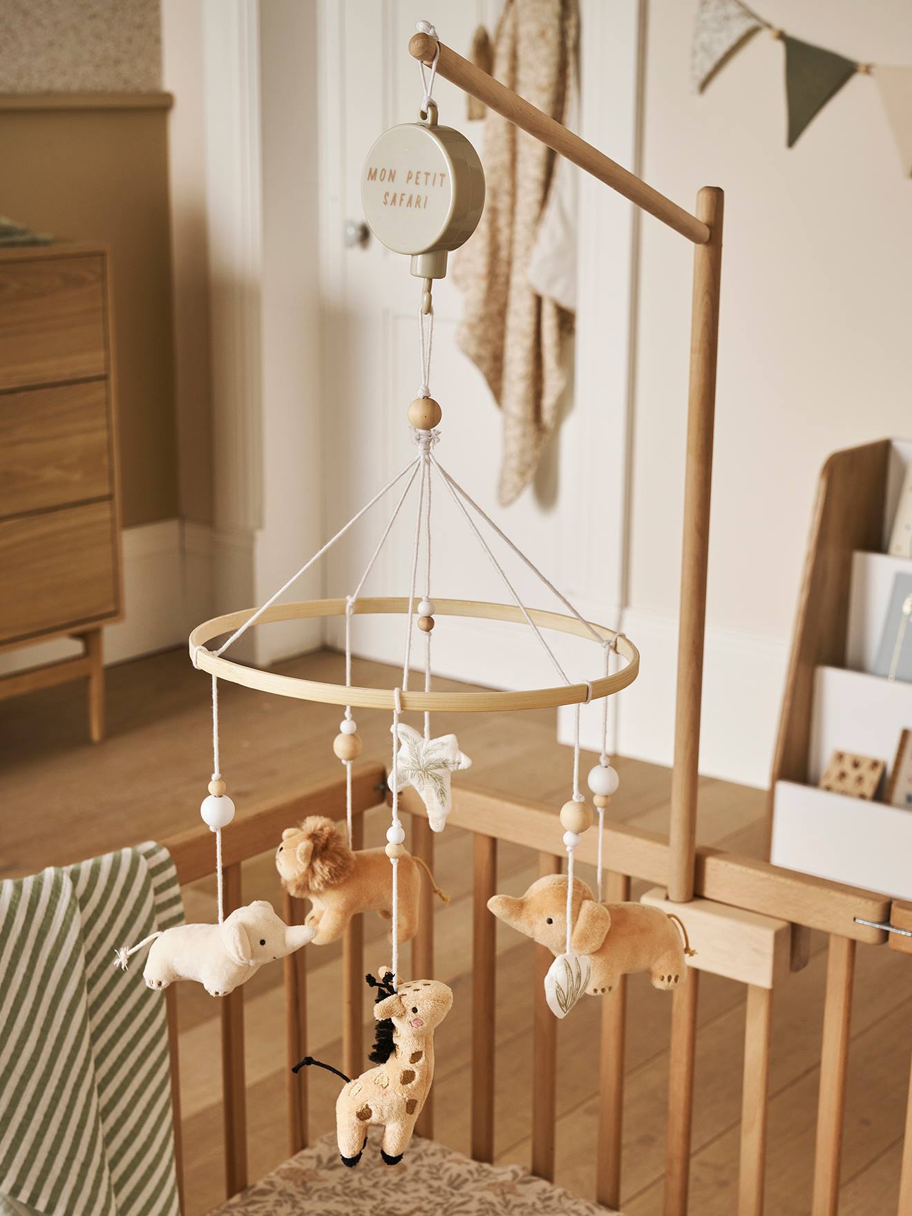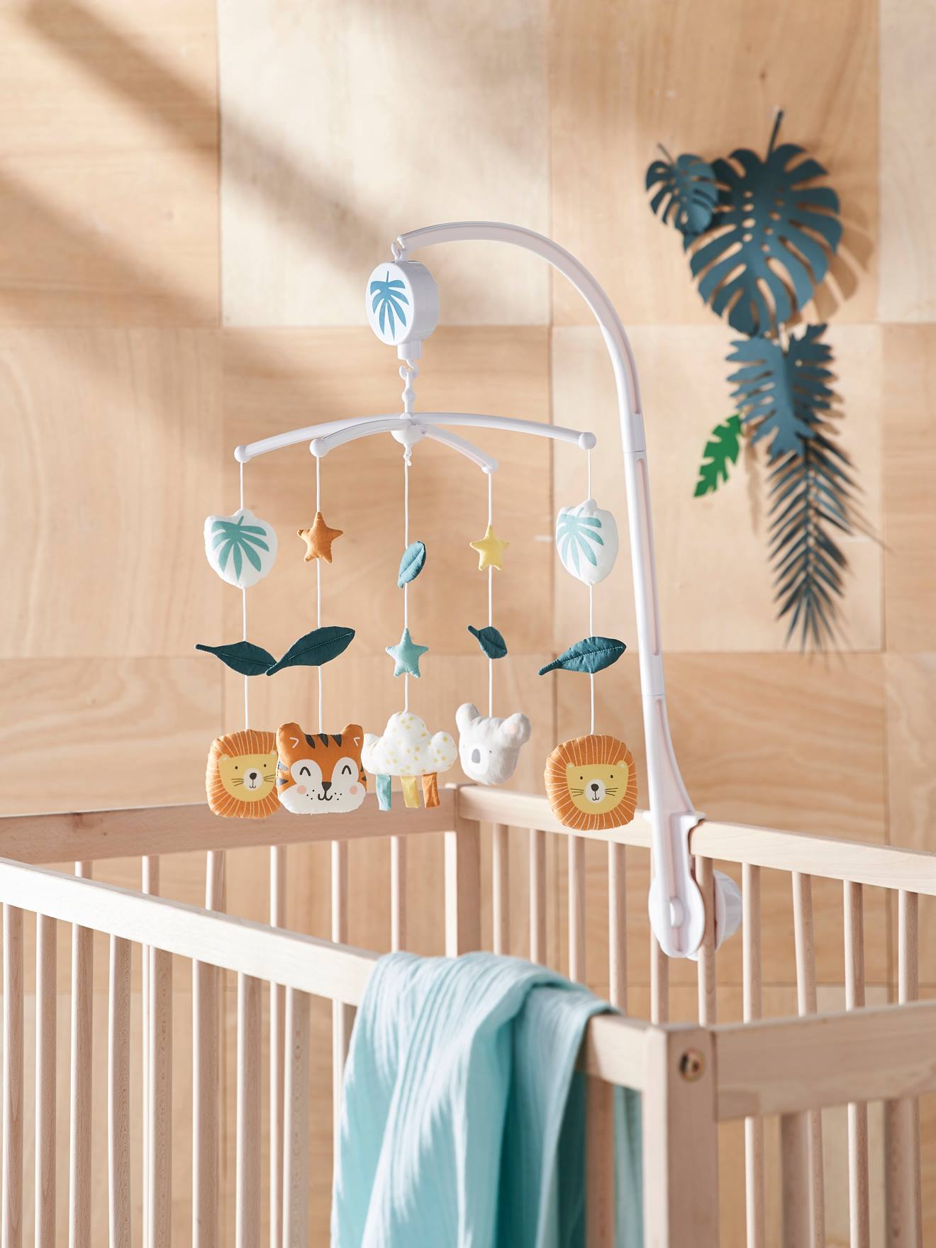 Baby Musikmobile mit Tieren SAVANNE salbeigrün von vertbaudet