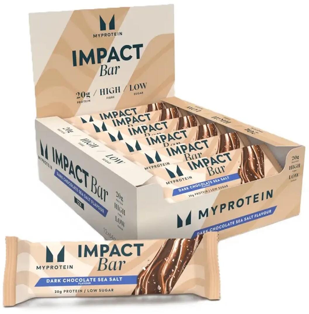 Myprotein Impact Protein Bar, 12 x 64g Riegelbox, Dunkle Schokolade und Meersalz