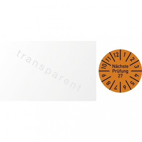 Dreifke Prüfplakette Nächste elektrische Prüfung 27-30,orange,Dokufolie,Ø30mm,18 St/Bogen