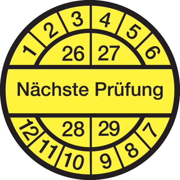 Dreifke Prüfplakette Nächste Prüfung 26-29, gelb, Dokumentenfolie, Ø 30mm, 1...