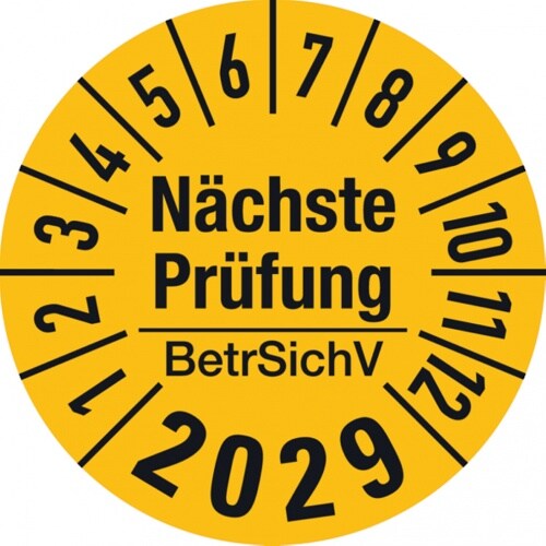 König Werbeanlagen Dreifke Jahresprüfplakette, Nächste Prüfung BetrSichV, gelb/sch - 30 mm Folie selbstklebend