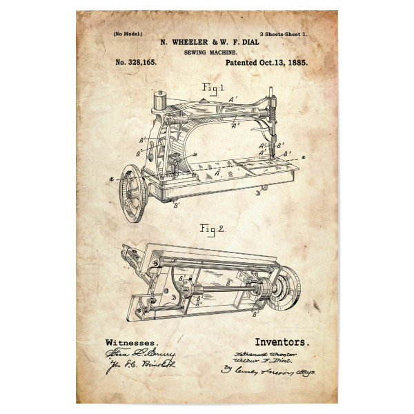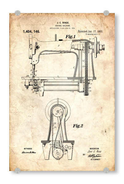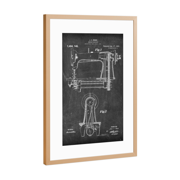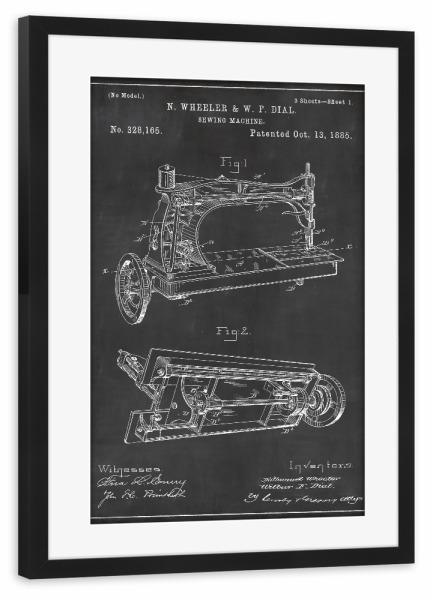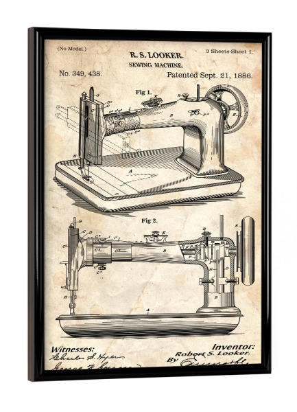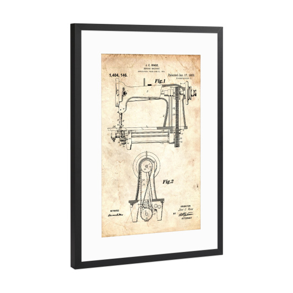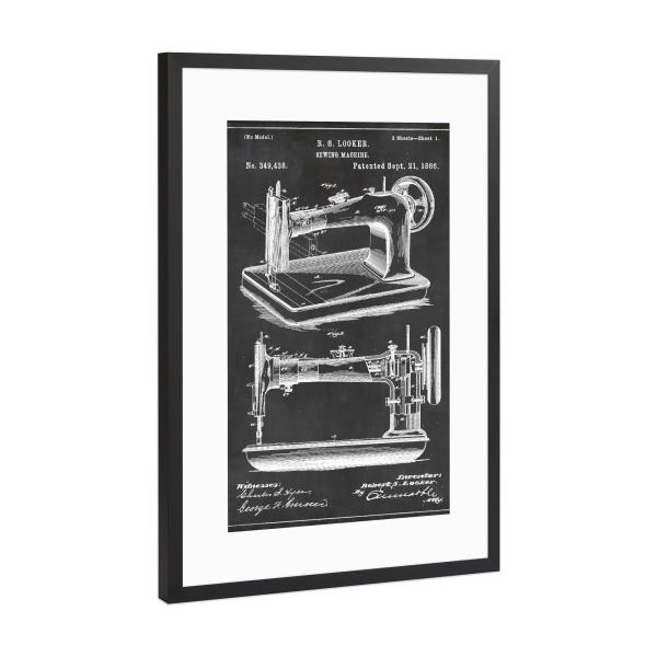 Poster mit schwarzem Rahmen "Nähmaschine (Antik)" artboxONE - Fashion - Blaupause,Entwurf,Retro,Vintage,Antike,Patent,Nähen,Schneidern,Fashion