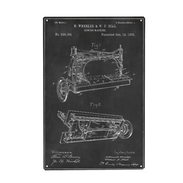 Metall Poster "Retro Nähmaschine" artboxONE - Schwarzweiß,Retro - Retro,Nähmaschine,Vintage,Patent - Blechschild