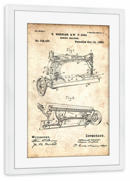 Poster mit Rahmen weiß "Nähmaschine Blaupause (Antik)" artboxONE - Fashion