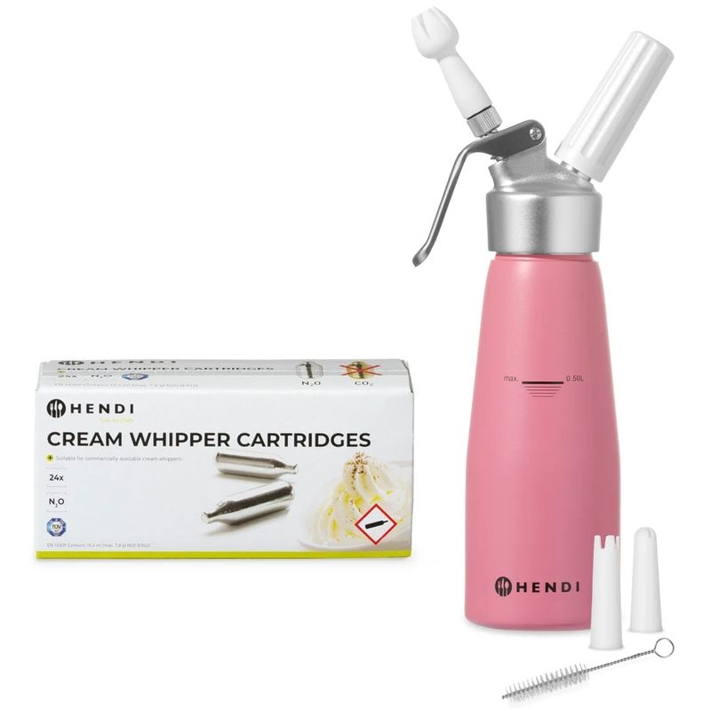 Sahnespender, HENDI, 0,5L, Pastellrosa pink + 24 Sahnekapseln (N2O)