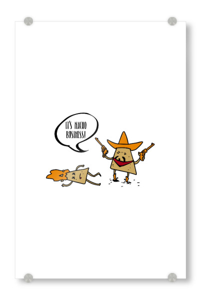 Acrylglasbild "Nacho Business" artboxONE - Essen & Trinken,Comic - Spaß,Witz,Tacos,Mexiko,Tequila,Geschäft,Büro,Arbeiten,Schießen,Taco tuesday,Nachos