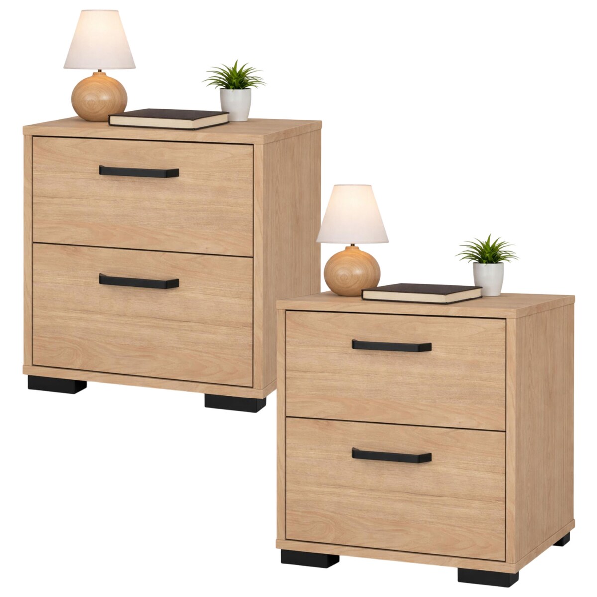 Nachtkastje Set von 2 - Nachtkastje Set - Moderne Beistelltische - 2 Steckdosen - Cloud White - 45cm x 35cm x 55cm