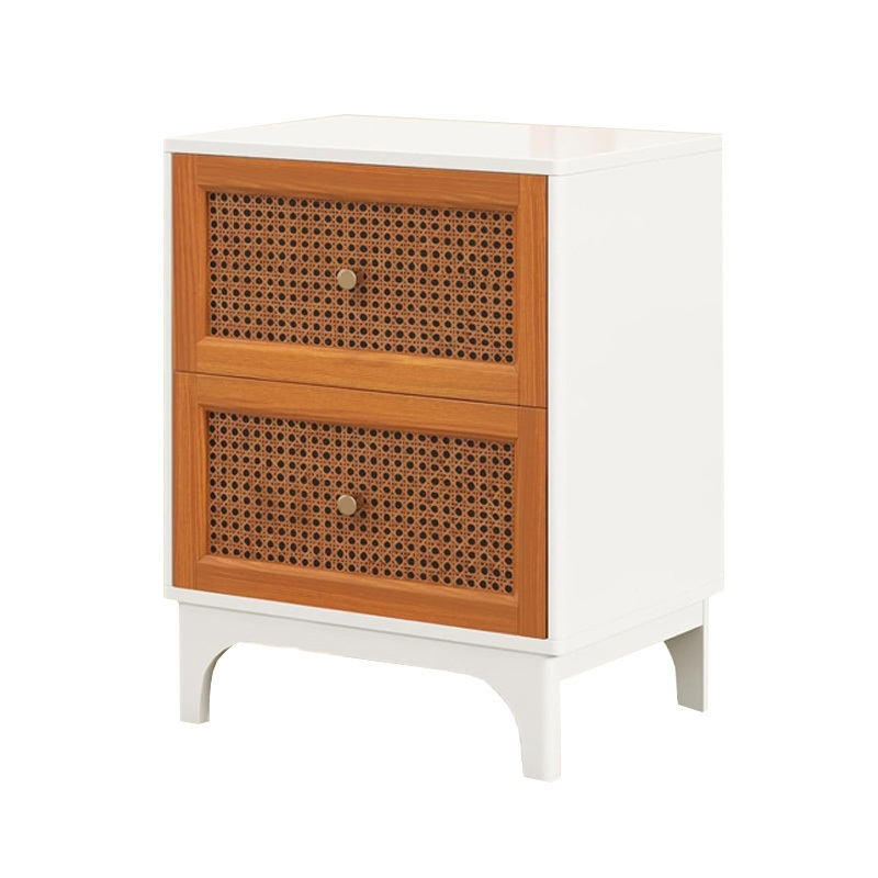 Nachttisch mit Ladestation und 2 Schubladen, Rattan und Holz