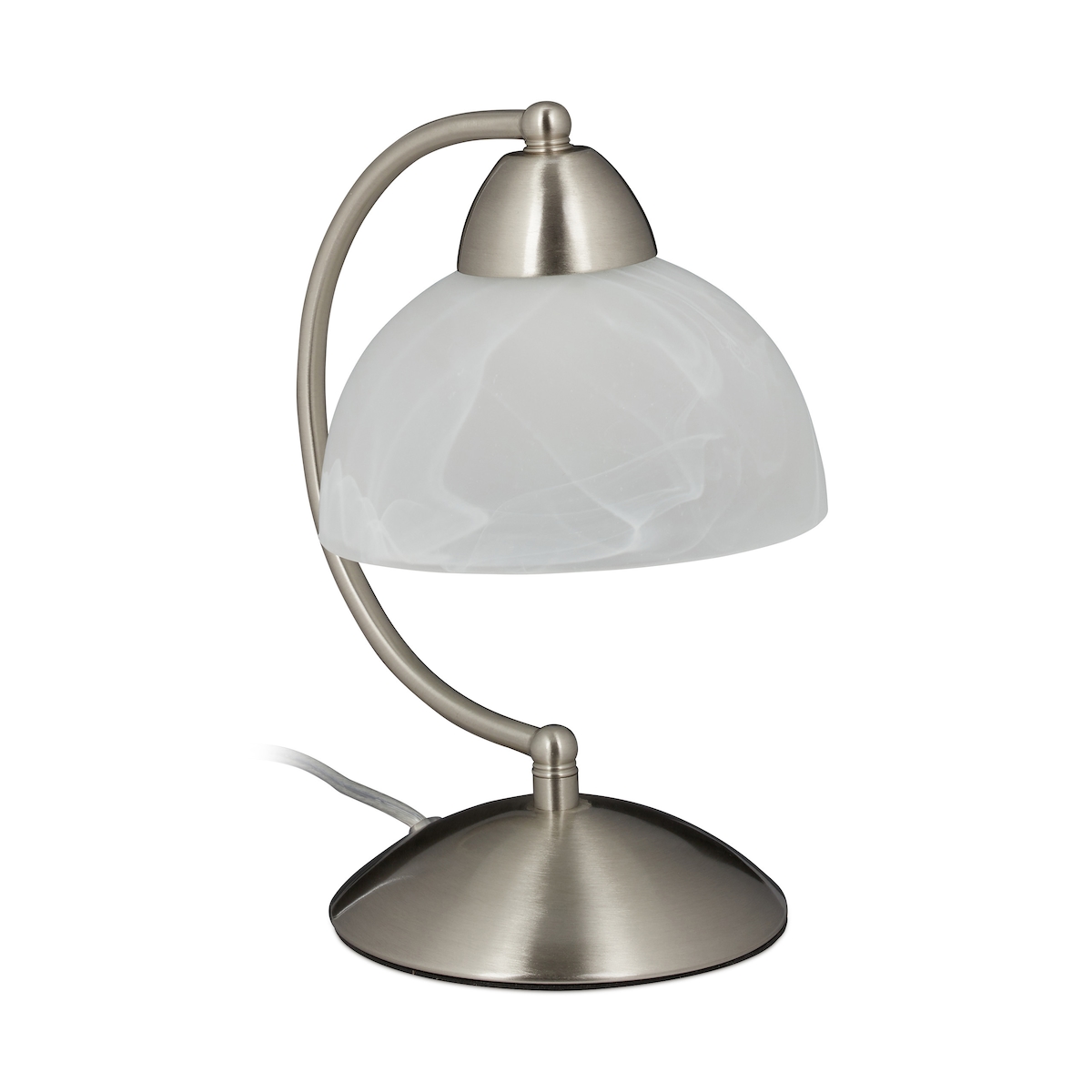 EGLO Tischlampe Damasco 1, Deko Tischleuchte, kleine Nachttischlampe aus Metall und Glas in Silber und Weiß, E27 Fassung