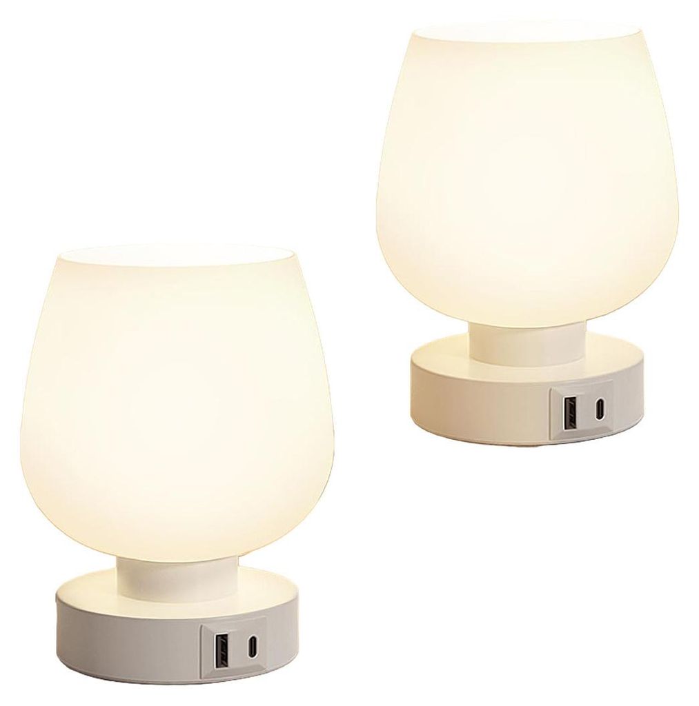 2er Set Touch Nachttischlampe – Dimmbar, LED mit USB A+C Anschlüssen, Kleine Glaslampe für Schlafzimmer