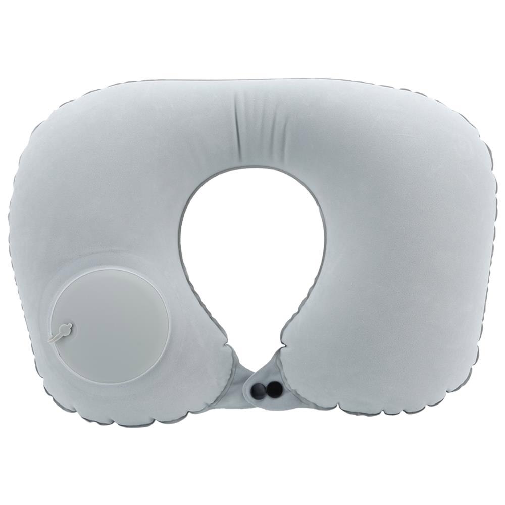 Intirilife Aufblasbares Nackenkissen in GRAU - 16 x 12 x 5 cm - Nackenhörnchen zum Aufblasen mit Druckknopf Verschluss mit ergonomischer Form