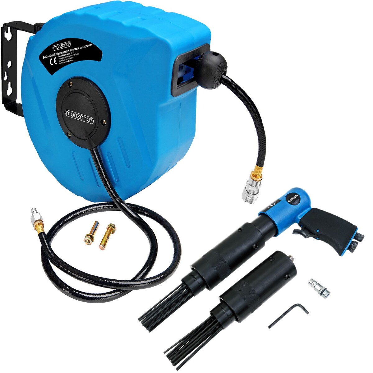 MONZANA Set Druckluft Schlauchtrommel 10m + Druckluft Nadelentroster