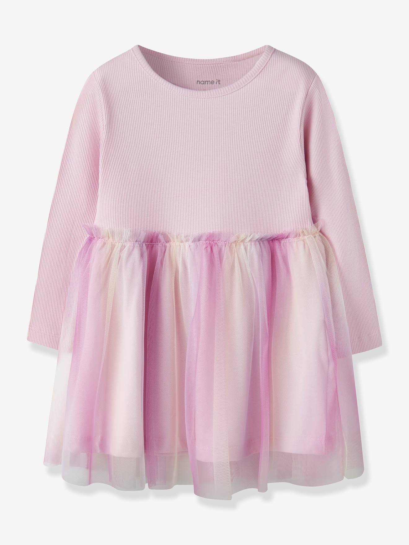 Kleid Langarm mit Tüllrock Mädchen NAME IT pastellrosa Gr. 122